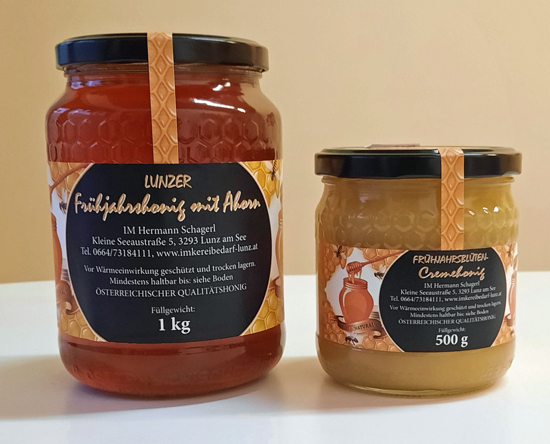 Qualitätshonig aus der Eisenstraße NÖ Hammerherrenhonig (Waldhonig) 380g € 8,00 - 150g € 4,30 Goldhaubenhonig (Blütencremehonig) 380g € 8,00 - 150g € 4,30 Eisenstrasse-Met 0,5 l € 8,00 Der Versand von Met ist leider nicht möglich |
